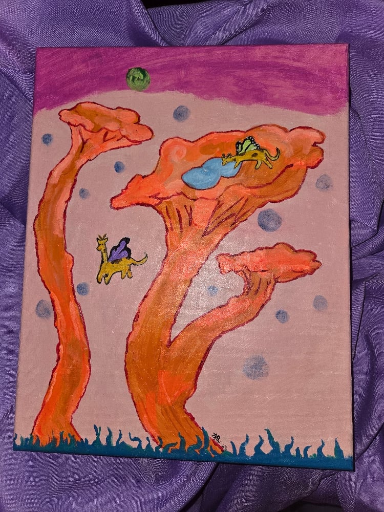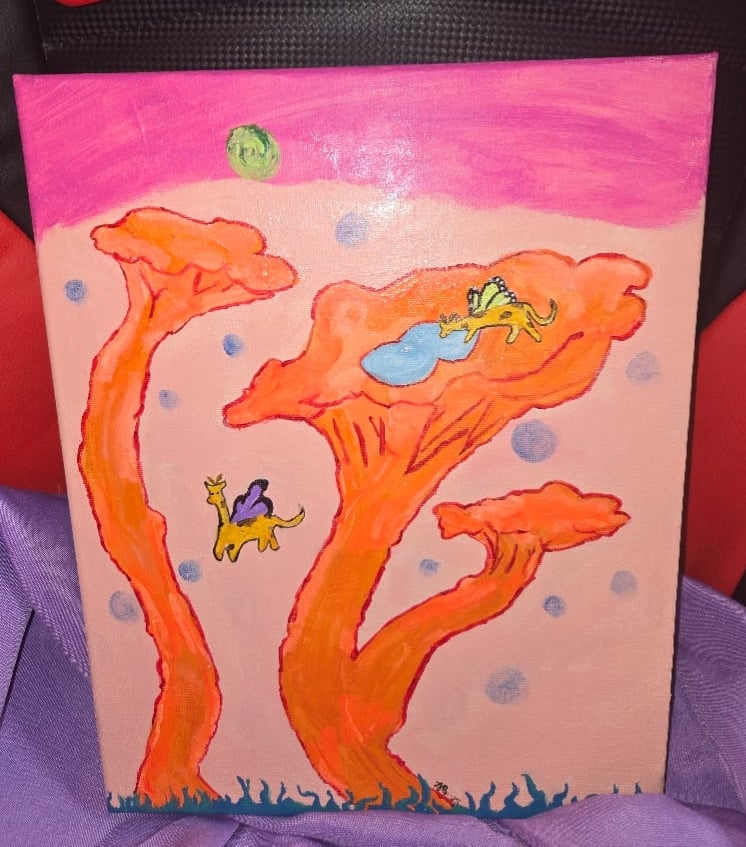 Skip to main contentA tower of giraffe fairies are roaming this mushroom meadow while sipping dew.