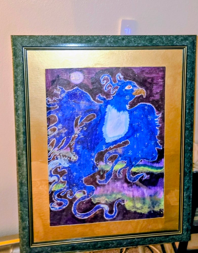 This blue phoenix rises.